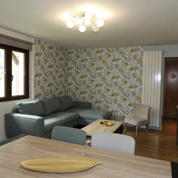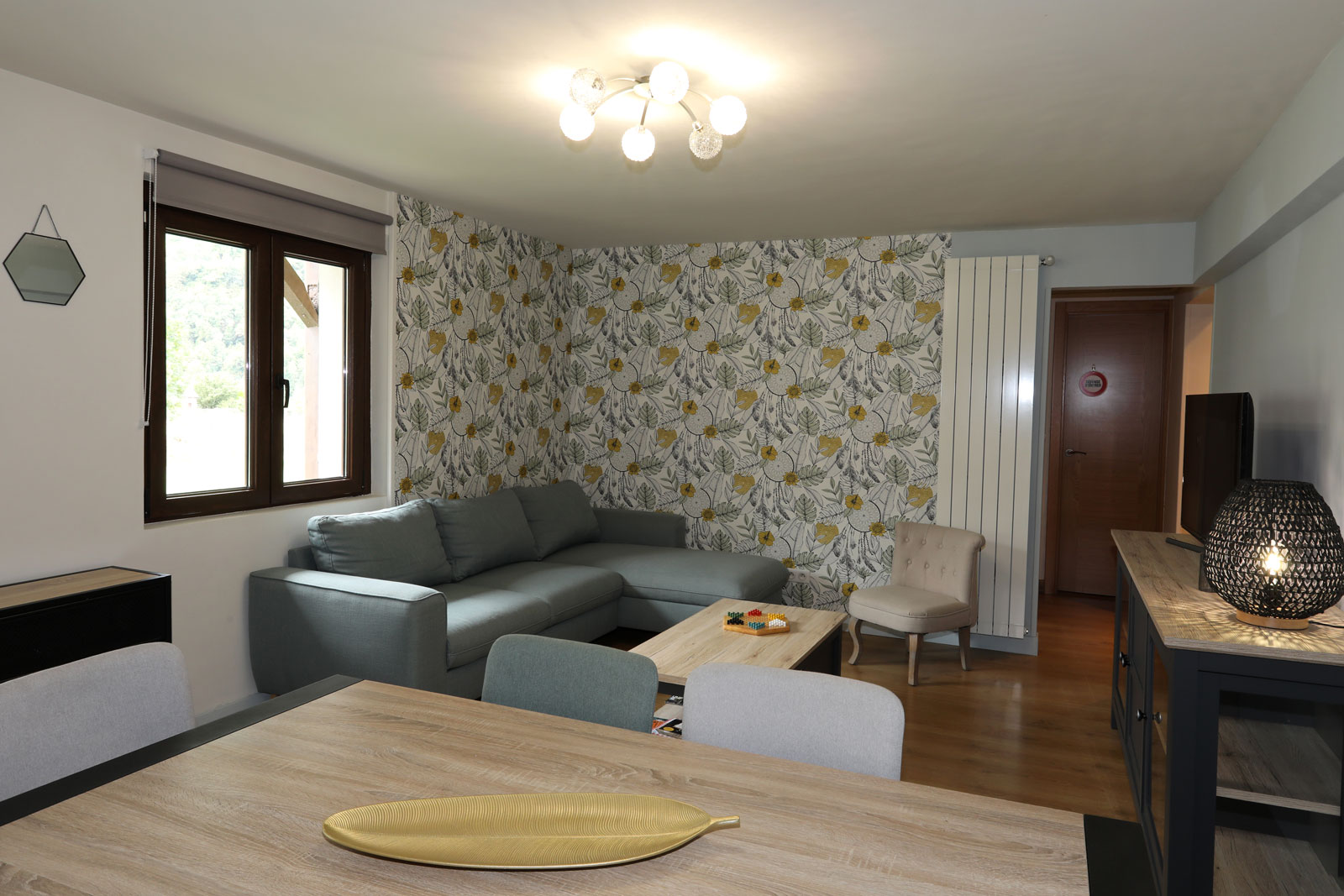L'appartement d’environ 65 m² est en rez-de-chaussée, avec vue sur les montagnes. La terrasse équipée d'un voile d'ombrage, d'une table et ses chaises vous permet d'y prendre vos repas et surtout de profiter au maximum de ce lieu tranquille.